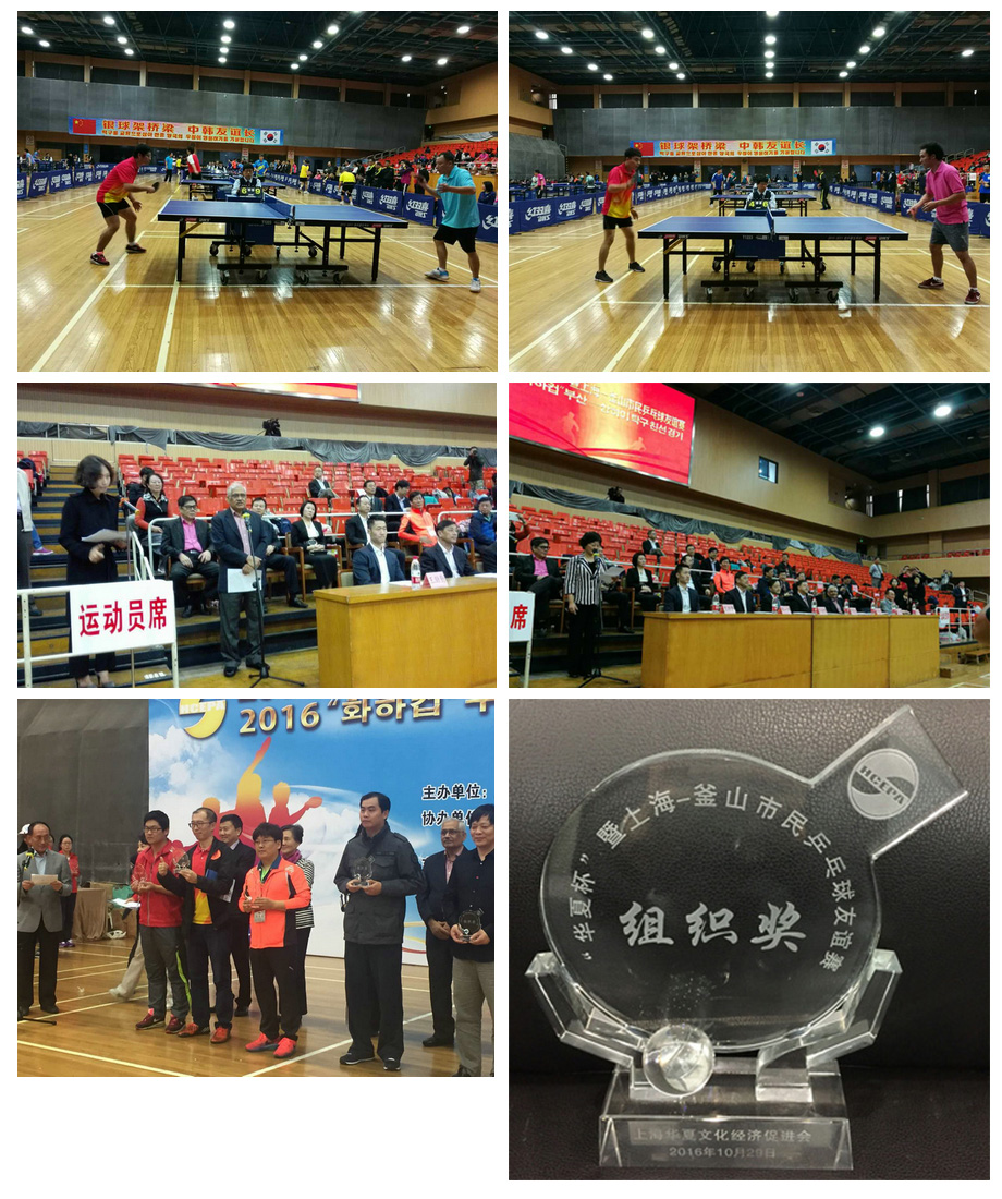 由上海华夏文化经济促进会主办的上海市第二届市民运动会·2016“华夏杯”暨上海-釜山市民乒乓球友谊赛在上海市体育宫举行。 200余名乒乓球爱好者齐聚一堂,切磋球技,交流经验,共同享受乒乓球运动带来的乐趣。