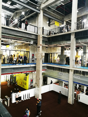 越界·世博园内保存完好的巨大工业遗存桁架与改造后的现代时尚建筑风格相得益彰,共计4层楼的展会现场通过扶梯与别致的连廊相互连接,空间感强烈。时尚与工业风的结合使本届MODE别有一番风味。
