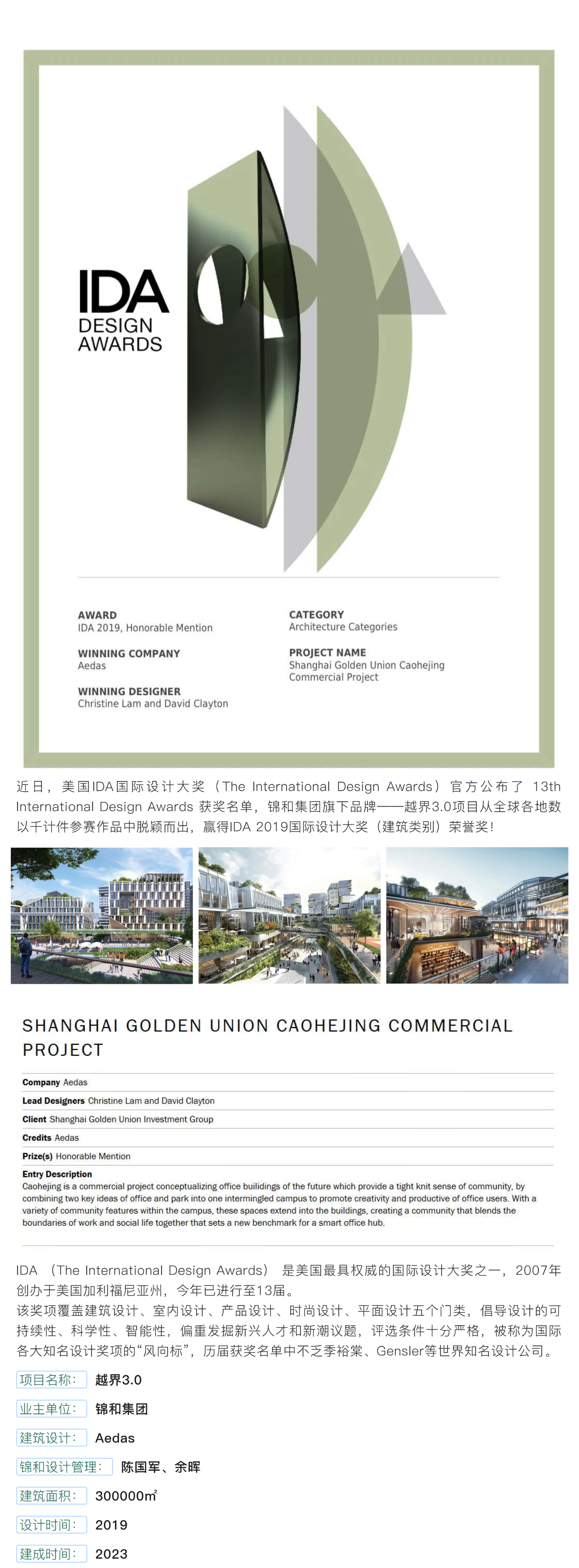 荣誉|锦和越界3.0项目赢得IDA 2019国际设计大奖